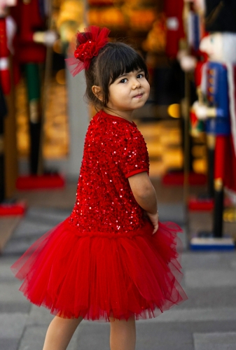 Kırmızı Payet Beden Tütü Etekli Çocuk Elbise ve Tokası