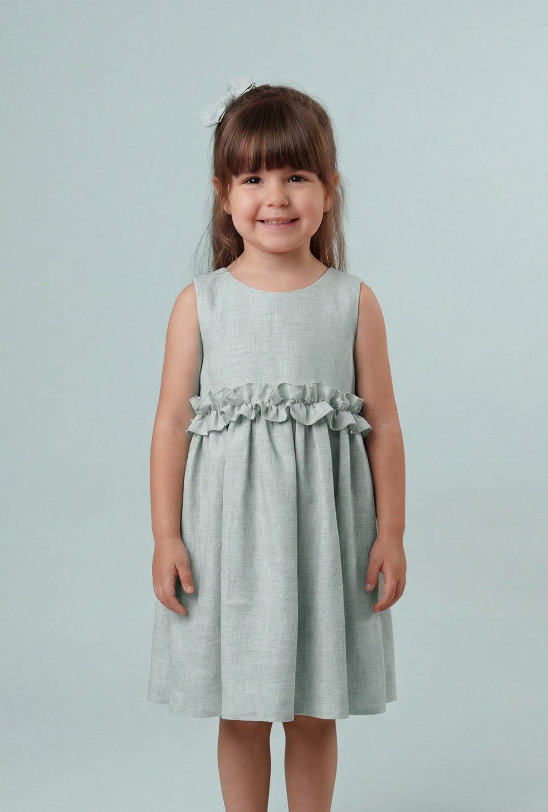 Mine Yeşil Fırfır Detay Çocuk Elbisesi