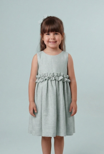JBK Mine Yeşil Fırfır Detay Çocuk Elbisesi