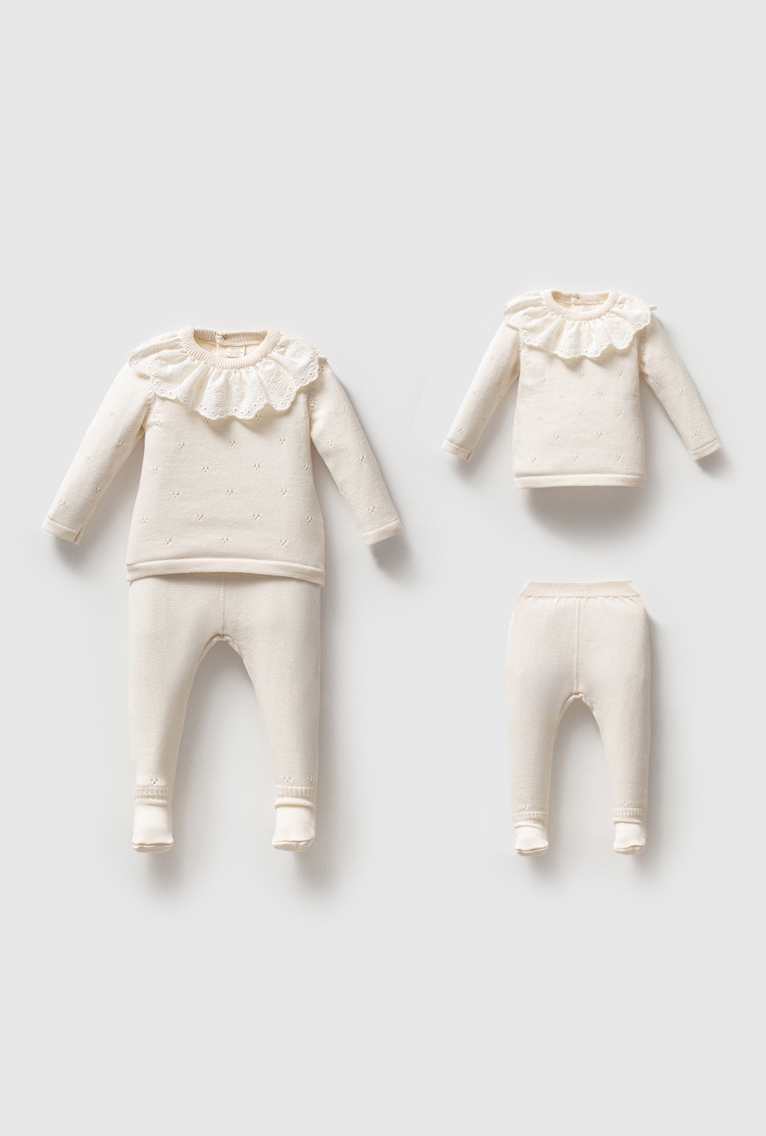 NipperLand 8345N KIZ 3-6-9-12 AY DANTEL YAKALI 2Lİ TAKIM KREM Just Baby And Kids Store