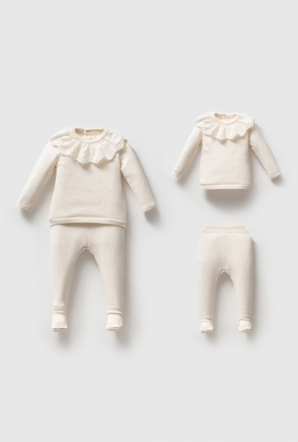 NipperLand 8345N KIZ 3-6-9-12 AY DANTEL YAKALI 2Lİ TAKIM KREM