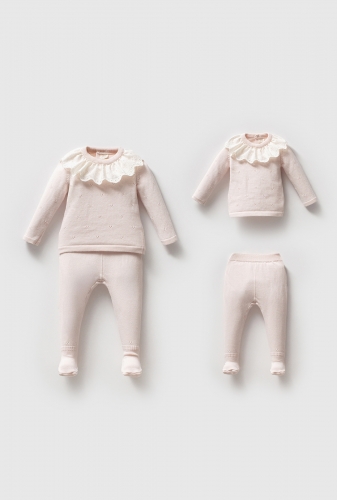 NipperLand 8345N KIZ 3-6-9-12 AY DANTEL YAKALI 2Lİ TAKIM PEMBE